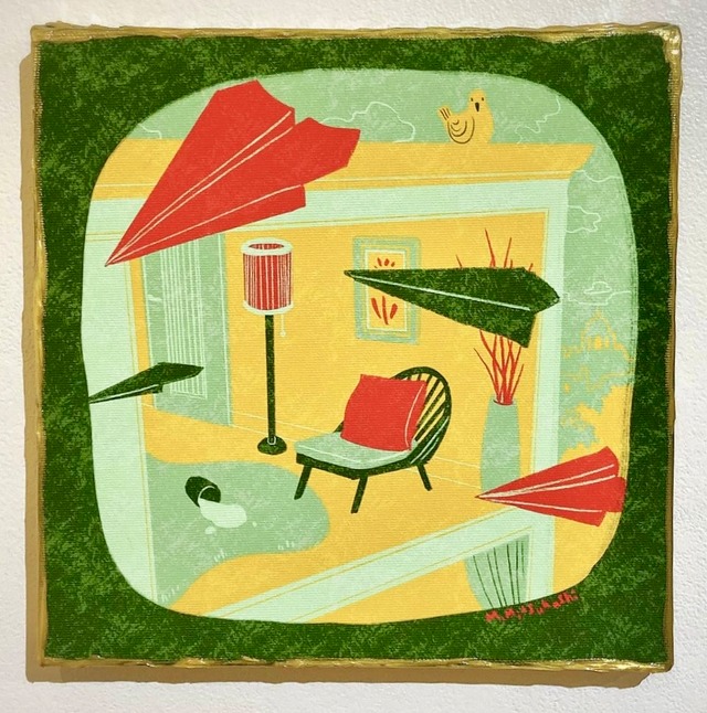 マットジークレープリントを施したキャンバスパネルに光沢感のある画材で加筆した一点物のアート作品です。 そのまま壁に掛けたり、市販のイーゼルを使用して気軽に飾っていただけますが、埃除けなどより保存性を高めたい場合はご自身で画材店へ持ち込んでの額装をおすすめいたします。 【ジークレーとは】 デジタルデータをキャンバスや上質紙などの媒体に高精細でプリントを施したもの。 長く飾って楽しんでいただける様、耐光性が高く、長期間での退色が起こりにくい顔料インクを使用しています。 ◉額装なし ◉壁掛け紐付き ◉裏面に作家サイン入り 《作品サイズ》 SSM:227×227mm、厚み:20〜25mm 《素材》 キャンバス、ジークレープリント、ジェルメディウム ※撮影上、実物と若干色味が違う可能性がございます。