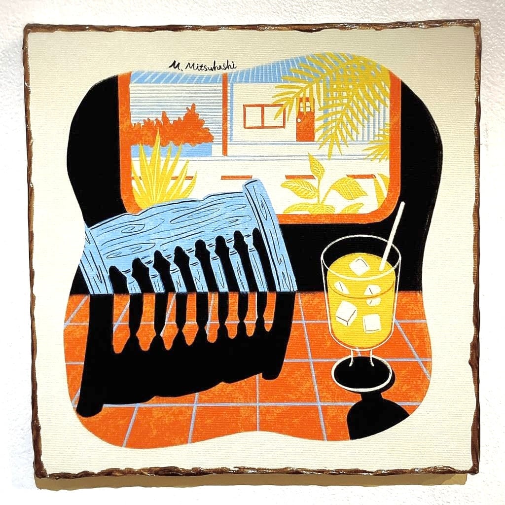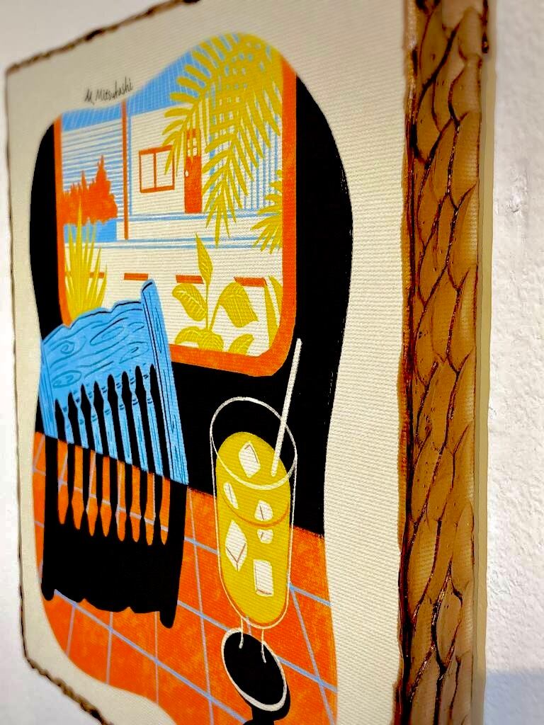 マットジークレープリントを施したキャンバスパネルに光沢感のある画材で加筆した一点物のアート作品です。