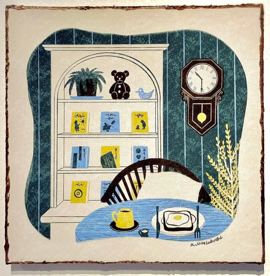 マットジークレープリントを施したキャンバスパネルに光沢感のある画材で加筆した一点物のアート作品です。