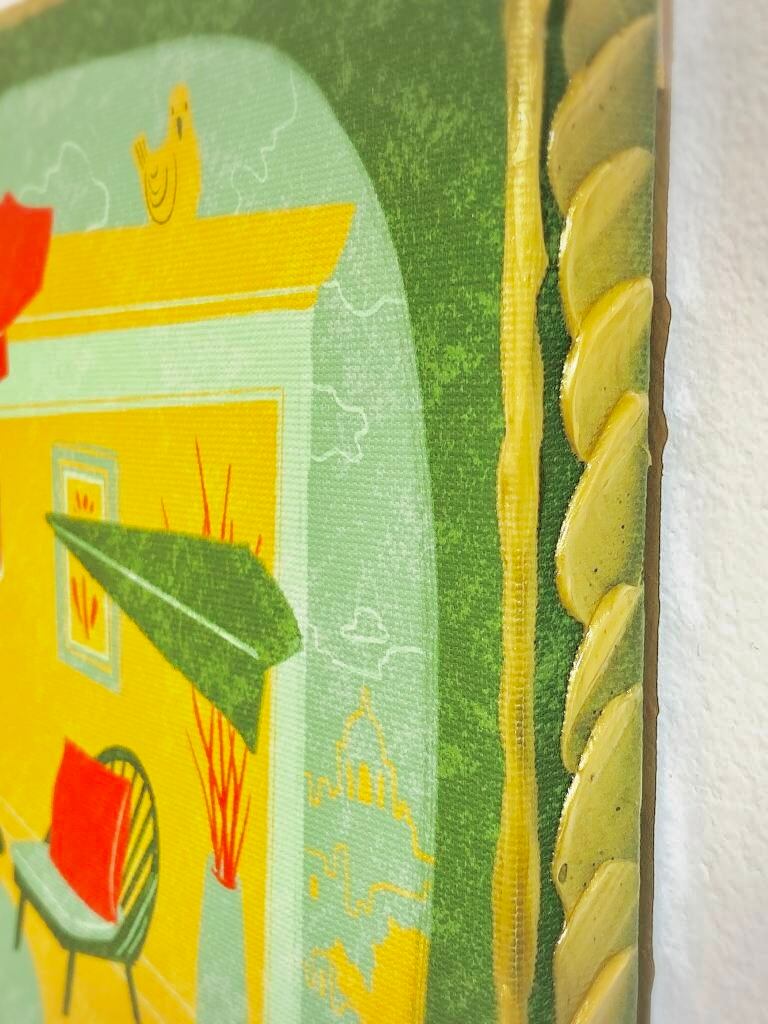 そのまま壁に掛けたり、市販のイーゼルを使用して気軽に飾っていただけますが、埃除けなどより保存性を高めたい場合はご自身で画材店へ持ち込んでの額装をおすすめいたします。